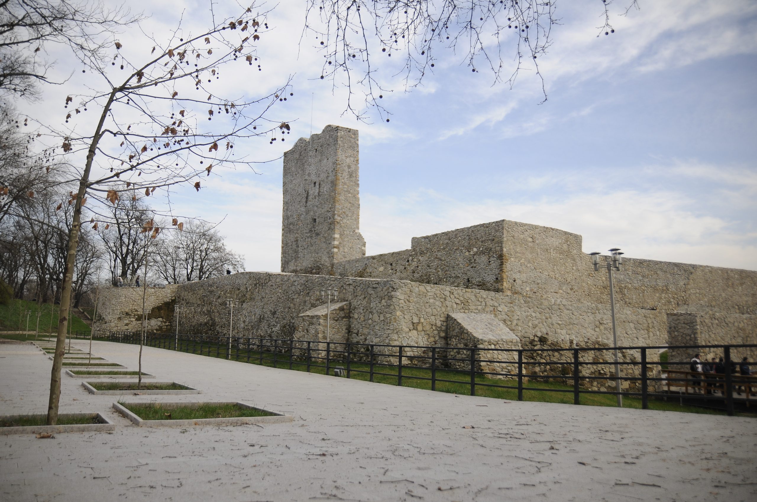 Numele medieval al cetății Severinului ar putea avea trei origini posibile: una latină, asociată numelui împăratului Septimiu Severus; una slavă, asociată cuvântului “severnâi”, tradus prin cuvântul „din nord” sau „nordic”; una religioasă, asociată sfântului Severin de Noricum, sfânt protector în Evul Mediu al bisericii latine din incinta cetății medievale când aceasta era utilizată de călugării misionari catolici veniți din regiunea Austriei superioare (Noricum). Ruinele care se văd astăzi nu provin doar de la o singură construcție. Existau două incinte, una interioară și alta exterioară, cea din urmă împrejmuită de un șanț. Ca urmare a săpăturilor s-au scos la iveală o serie de turnuri pătrate care flanchează curtea interioară; două sunt așezate pe latura care flanchează incinta interioară, două sunt așezate pe latura sudică în capetele extreme, iar alte două situate pe latura interioară a zidului de apărare. Din turnul ce se află în partea de nord-est se mai păstrează un perete, ce ajunge până la înălțimea a trei etaje, el având 11 m, o lungime de 9 m și o lațime de 2,5 m. Primul ban de Severin, Luca, a fost menționat în 1233. Anul 1233 poate fi luat ca dată de naștere a unei noi cetăți peste ruinele Drobetei, sub numele de Severin (Severinopolis) (ceea ce a stat și la baza Banatului de Severin, Terra Zeurino, Tara Severinului). Numele de Severin a fost preluat în amintirea împaratului Septimiu Sever, cel care ridicase Drobeta la rangul de colonie. Tot în această perioadă este probabil ca s-a executat Cetatea Grădetului. În 1247 regatul ungar i-a adus în țară pe Cavalerii Ioaniți, dându-le reședința la Severin , unde aceștia vor construi cetatea medievală a Severinului (Castrul Zeurini menționat în Diploma Cavalerilor Ioaniți din anul 1247), puternică fortăreață, în incinta căreia a fost construită și o biserică gotică, probabil sediul episcopiei catolice de la Severin , care s-a aflat aici până în anul 1502. Cavalerii se vor retrage în 1259, cetatea rămânând în bataia tunurilor turcilor, bulgarilor și tătarilor ce voiau să treacă Dunărea, respectiv a ungurilor care atacau Oltenia. La sfârșitul secolului al XIII-lea regele Ștefan al Ungariei a purtat cinci războaie cu țaratul bulgar pentru apărarea Cetății Severinului. Voievozii români și-au disputat și ei întâietatea asupra redutabilei cetăți cucerind-o sau revendicând-o în răstimpuri. Pentru ea a murit Litovoi, iar Basarab I l-a umilit pe Carol Robert de Anjou la Posada în 1330. Mircea cel Bătrân a înființat Bania Severinului, iar în 1406 încheia un tratat de alianță cu Sigismund al Ungariei chiar la Severin. După moartea lui Mircea, Sigismund va elibera Cetatea Severinului ocupată de turci și va face chiar unele concesii mănăstirilor Vodița și Tismana. Apoi Banatul de Severin revine lui Iancu de Hunedoara, care întărește toate cetățile de la Dunăre. După căderea Constantinopolului în anul 1453, atacurile asupra cetăților dunărene s-au întețit. În 1524, după un atac devastator al turcilor lui Soliman Magnificul, din cetatea Severinului a mai rămas în picioare doar un turn, ceea ce a dus la numirea locului de către mehedințeni cu numele de “Turnul lui Sever”. Timp de aproape 300 de ani cetatea a fost rezidită după fiecare bătălie dată aici pentru apărarea Țării Românești, împotriva ungurilor și turcilor. Fosta Drobeta renăscuse. În această perioadă de trei secole au coexistat două biserici creștine, catolică și ortodoxă.