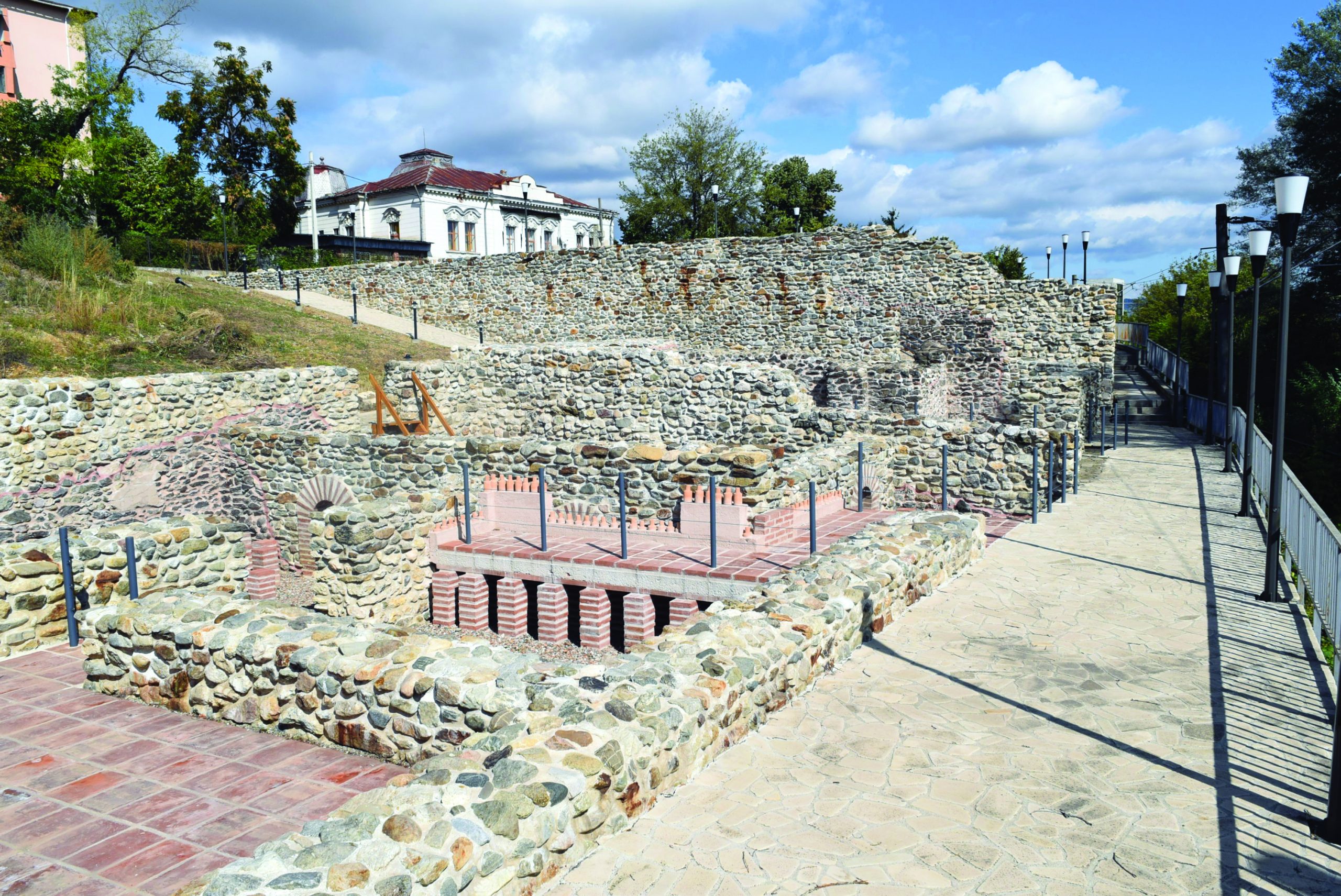 Sunt cele mai complicate instalații termale din Dacia Inferioară. Astăzi, se păstrează mai puțin de jumătate din ruinele termelor. Se pare că au fost utilizate atât de soldații ce staționau în Castrul Drobeta, cât și de populația civilă. Au fost construite de soldați ai Leg. V Macedonica o dată cu castrul, iar la începutul secolului al III-lea au fost refăcute și „modernizate” de un detașament al Cohortei I Sagittariorum, condus de Aurelius Mercurius, magister in Figlinis (maistru cărămidar). Pe lângă dotările obișnuite ale unor terme, cum ar fi camera de foc (PRAEFURNIUM), camera de aburi (LACONICUM), sala de baie (CALDARIUM), camera de apă rece (FRIGIDARIUM) și altele, în partea de nord se găseau săli de lectură și un spațiu pentru exerciții și întreceri sportive, PALESTRA. Cercetǎrile arheologice realizate de specialiști în istorie de la Universitatea Edinburgh și de la Institutul de Arheologie „Vasile Pârvan” din București au descoperit, în situl arheologic de la Schela Cladovei (cartier al Severinului actual), urme umane din perioada Paleoliticului. Inventarul arheologic scos la iveală indică începutul vieții omului primitiv, al trecerii acestuia de la stadiul de culegător, pescar și vânator la o civilizație sedentarizată modernă.