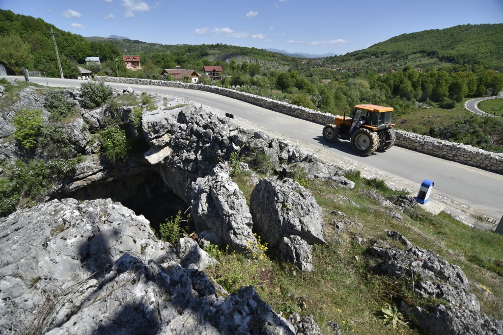 Podul lui Dumnezeu este unicul pasaj natural rutier funcțional la nivel național, fiind un vestigiu al Peșterii Podului ce a rezultat prin surparea tavanului acesteia. Este cel mai mare pod natural al țării și al doilea ca mărime din Europa (30 m lungime, 13 m lățime, 22 m înălțime și 9 m grosime), dar singurul din lume deschis traficului rutier (inclusiv de mare tonaj). Ca alcătuire petrografică prezintă o structură masivă de calcare stratificate în bancuri de 1-2 metri, arcada din aval aflându-se într-o stare de conservare mult mai bună decât cea din amonte. Podul poate fi admirat în toată măreţia sa din Crovul Peşterii, de unde se dezvăluie deschiderea spre Valea Pragului şi structura lui etajată formată din blocuri de calcar suprapuse, supuse eroziunii şi vremuirii. Privit din partea opusă, dinspre Valea Turcului, Podul se impune ca un arc uriaş, împietrit, pe sub care se admiră Dealul Peşterii şi seninul cerului. Localnicii au păstrat numeroase legende despre formarea Podului care explică denumirea de Podul lui Dumnezeu sau Podul Uriaşilor: